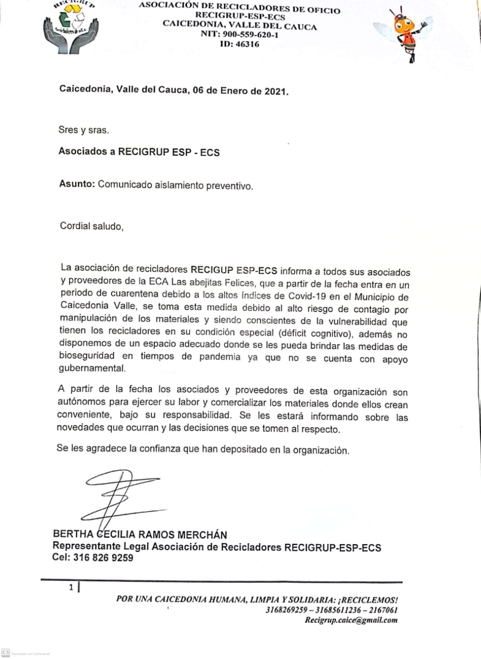 Una vez recolectados se almacenan en los contenedores específicos, así podremos obtener el material más puro y menos contaminado. Esto se hace gracias a la cooperación de la comunidad de Caicedonia Valle.